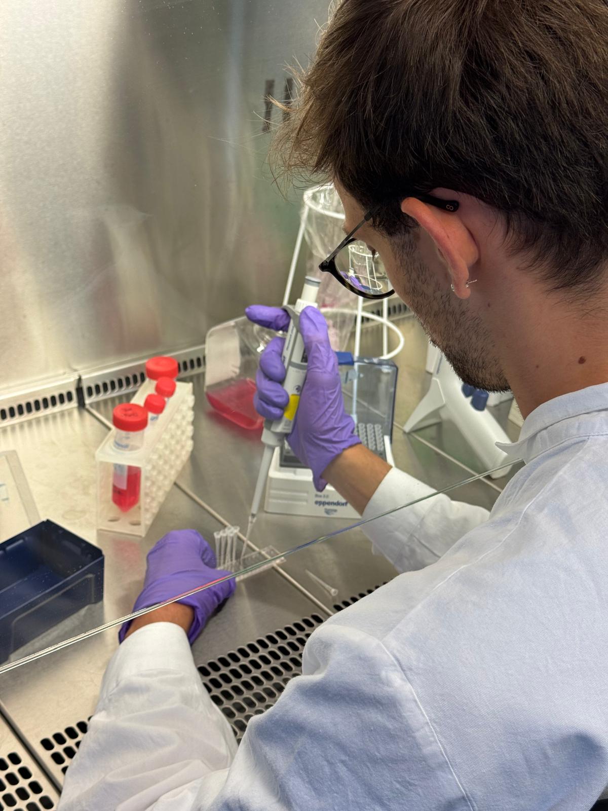 Da hier mit lebenden Zellen gearbeitet wird, ist sterile Arbeit unerlässlich. Das bedeutet: keine Bakterien, Viren oder Pilze dürfen sich einschleichen, denn schon kleinste Verunreinigungen können ganze Experimente zerstören. Deshalb arbeiten Forschende in sogenannten Sterilwerkbänken – geschlossenen Arbeitsbereichen mit gefilterter Luft –, tragen Handschuhe, desinfizieren regelmäßig alle Oberflächen und benutzen ausschließlich sterile Materialien.